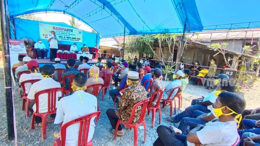 Tiap titik kampanye tatap muka terbatas, dihadiri tidak kurang dari 45 orang peserta terdiri dari tokoh masyarakat, pengurus Parpol Pengusung dan pasangan calon bupati serta wakil bupati sendiri.