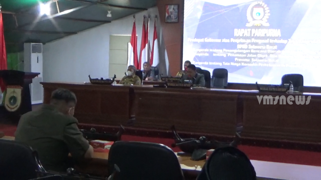 MAMUJU – Rapat Paripurna DPRD Sulbar, dengan agenda Tanggapan dan Atau Jawaban Fraksi-fraksi Atas Pendapat Gubernur Terhadap Tiga Rancangan Peraturan Daerah (Ranperda) Inisiatif DPRD Sulbar di Kantor DPRD Sulbar, Selasa, 15 Februari 2022.