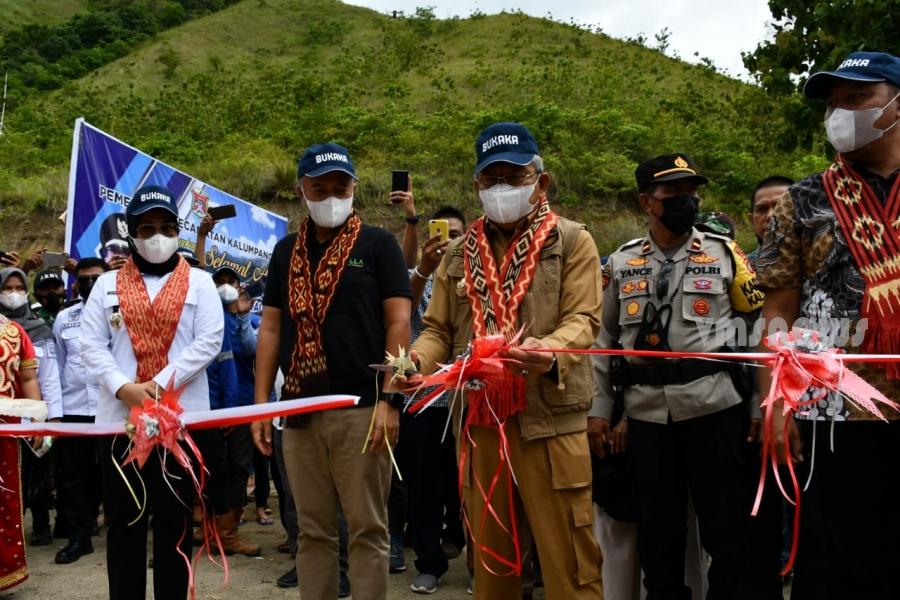 MAMUJU – Gubernur Sulbar Ali Baal Masdar didampingi Bupati Mamuju, St. Sutinah Suhardi bersama Direktur Utama Kalla Group, Solihin Jusuf Kalla meresmikan 14 Jembatan di Kecamatan Kalumpang, Kabupaten Mamuju. Peresmian tersebut dilakukan secara simbolis di Jembatan Karataun dengan panjang bentang 70 Meter.