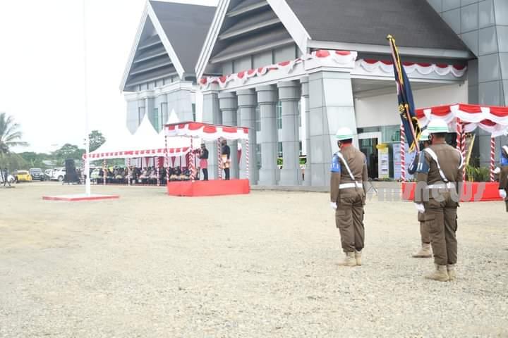 MAMUJU TENGAH – Gubernur Sulbar Ali Baal Masdar bersama Wakil Gubernur Sulbar Enny Anggraeni Anwar, menghadiri Upacara Peringatan Hari Jadi Kabupaten Mamuju Tengah Ke-9 Tahun, yang berlangsung di Lapangan Upacara Kantor Bupati Mamuju Tengah, Selasa, (14 /12/ 2021)
