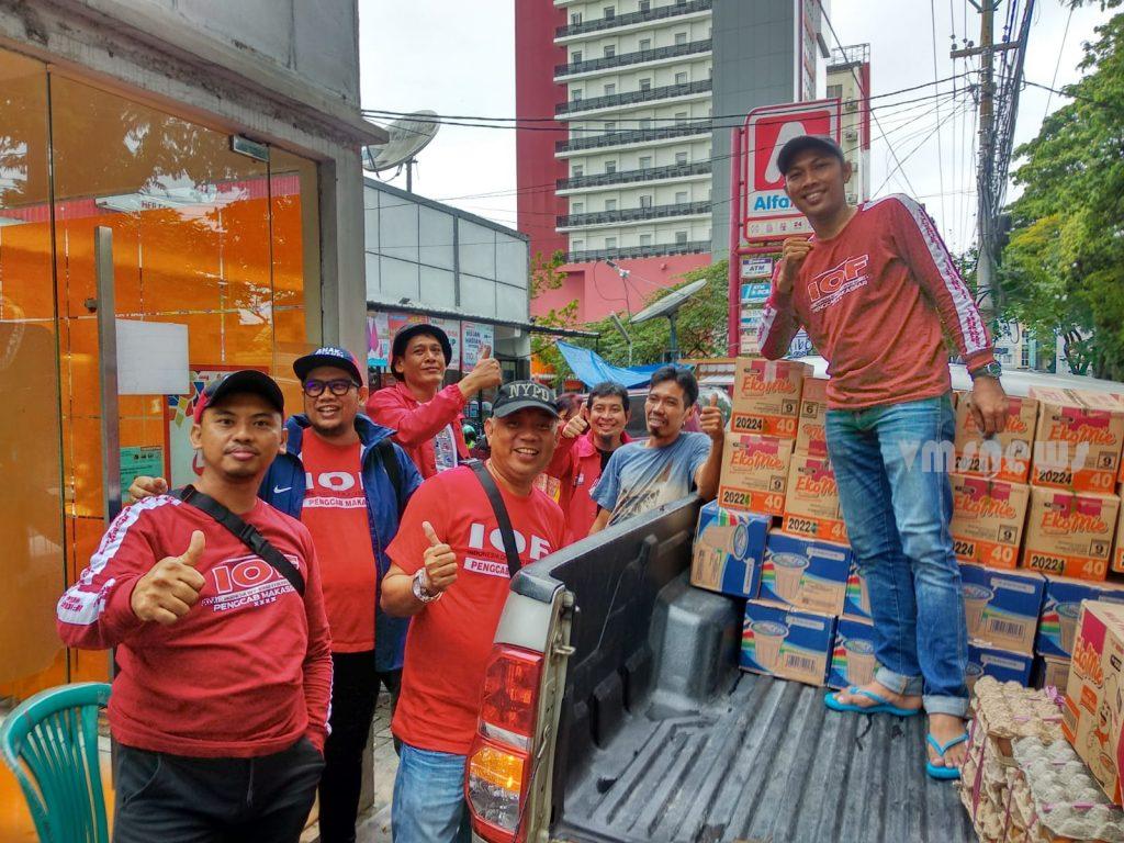 Pengurus IOF yang mendirikan posko peduli membawa bantuan sembako berupa mie instan, telur, dan air mineral.