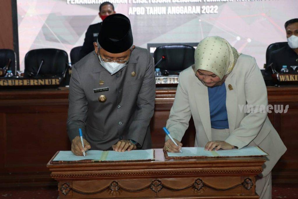 Hal tersebut setelah dilakukannya penandatanganan persetujuan bersama terhadap KUA-PPAS APBD 2022 oleh Gubernur Sulbar Ali Baal Masdar bersama Ketua DPRD Sulbar St. Suraidah Suhardi, dalam Rapat Paripurna DPRD Sulbar, yang berlangsung di Kantor Sementara DPRD Sulbar, Minggu (21 /11/ 2021).