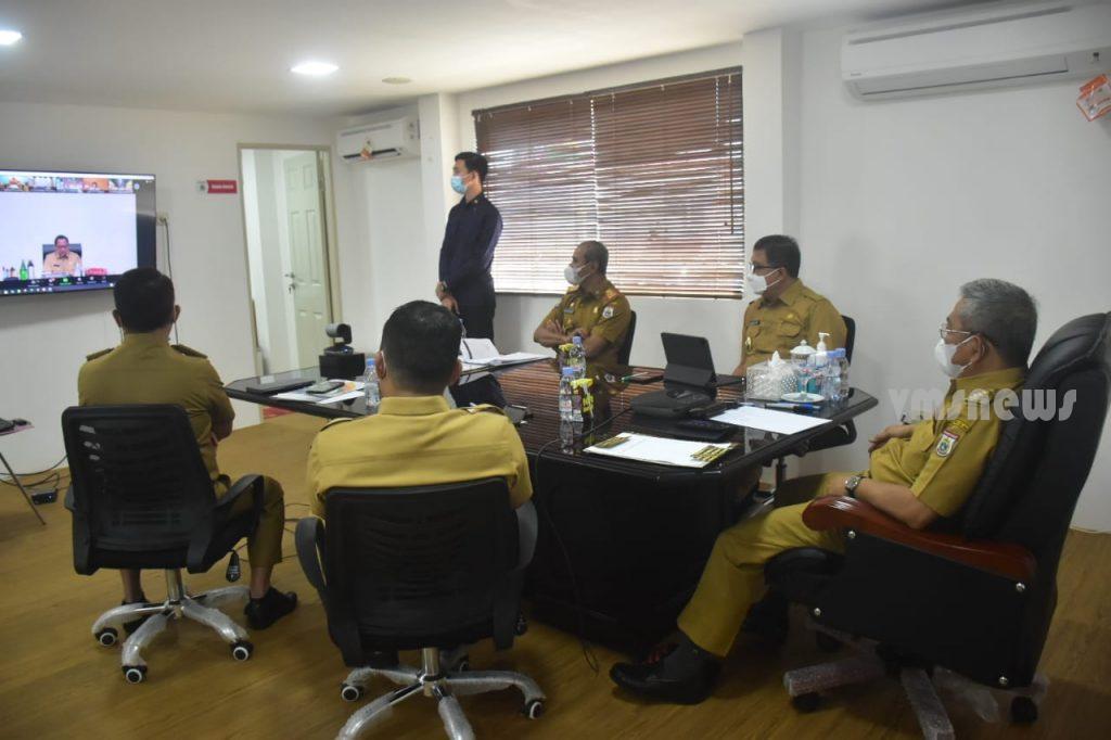 MAMUJU -Gubernur Sulbar Ali Baal Masdar didampingi Sekprov Sulbar Muhammad Idris, menghadiri Rapat Koordinasi (Rakor) Evaluasi Penyerapan Anggaran Daerah Tahun 2021 secara virtual dari Kantor Merah Putih Gubernur Sulbar, Senin, (22 /11 2021)