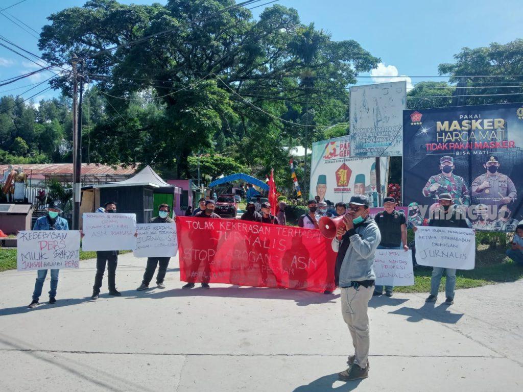 Sejumlah Jurnalis Gelar Aksi Unjuk Rasa di Depan Kantor Bupati Mamasa