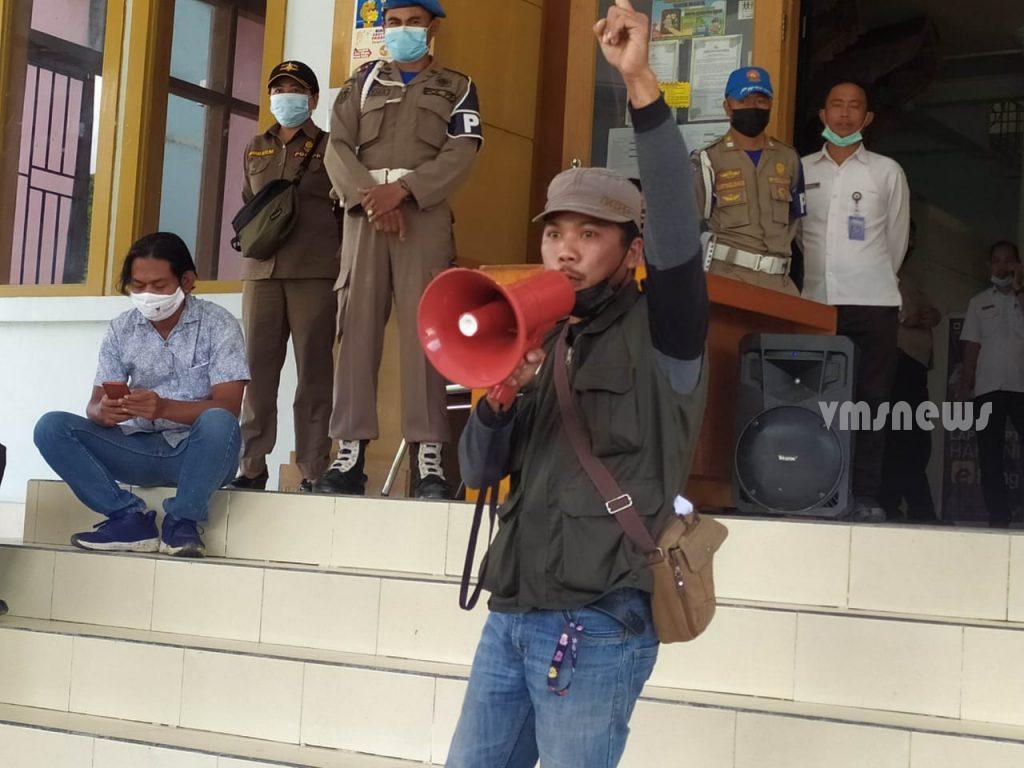 Kedatang mereka, membawa sejumlah spaduk yang berisikan tuntutan mereka.