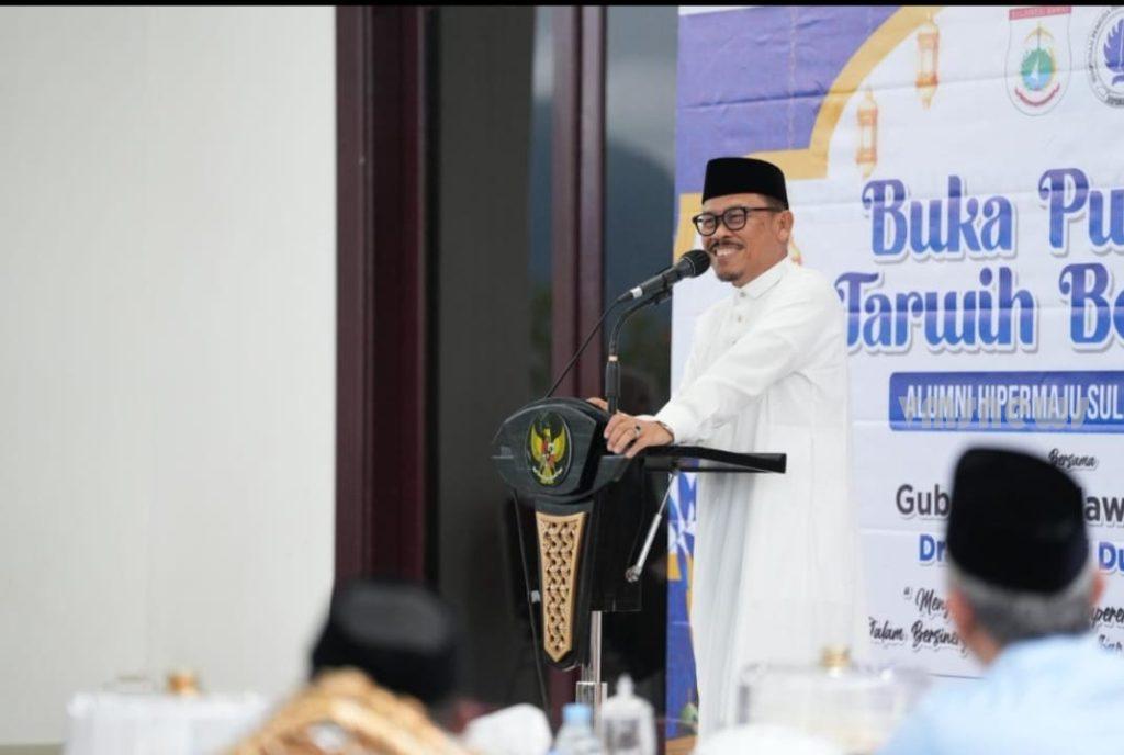 MAMUJU — Gubernur Sulawesi Barat (Sulbar), Suhardi Duka, mengenang perjalanan masa mudanya saat menempuh pendidikan di Makassar dalam acara buka puasa dan salat tarawih bersama alumni Hipermaju Sulbar, Senin, 16 Maret 2026.