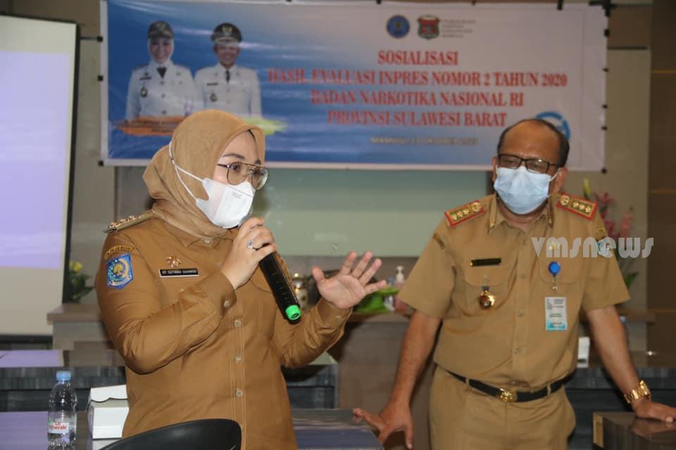 Mamuju -Sosialisasi hasil Evaluasi Inpres No 2 Tahun 2020 Menteri Dalam Negeri dan Menteri Koordinator Bidang Politik, Hukum, dan Keamanan dilaksanakan oleh Pemerintah Kabupaten Mamuju bekerjasama dengan Badan Narkotika Nasional Republik Indonesia Provinsi Sulawesi Barat di Kantor Dinas PUPR dihadiri langsung oleh Bupati Mamuju Hj. Sitti Sutinah Suhardi SH.,MSi dan kepala BNN Provinsi Sulawesi Barat Brigjen. Pol. Sumirat Dwiyanto,