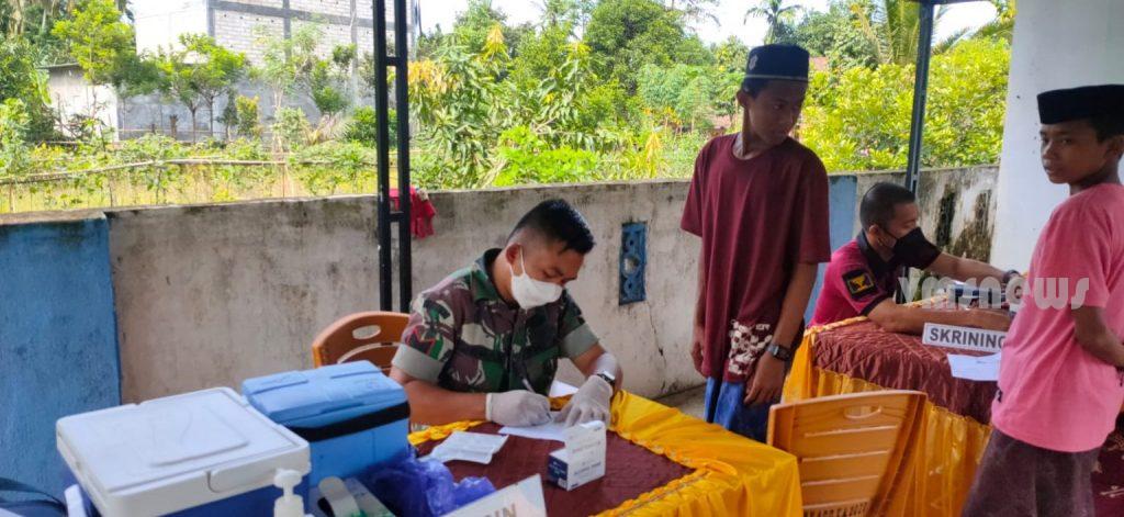 MAMUJU-Tim Vaksinator Kodim 1418/Mamuju kembali melaksanakan serbuan vaksinasi bagi warga Desa Kabuloang kecamatan Kalukku Kabupaten Mamuju, Sulawesi Barat, Selasa (07/12/21).