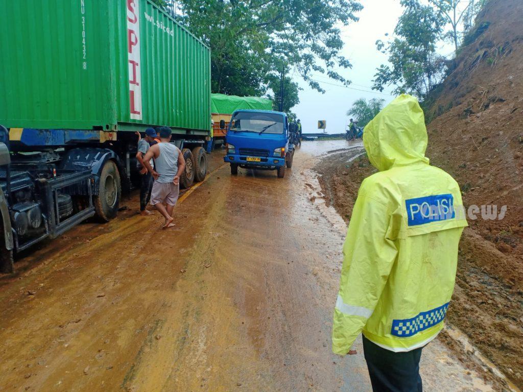 MAMUJU-Longsor tebing di jalan Tras Sulawesi Desa Botteng, Kelurahan Simboro, Jumat Sore (12/11/2021), membuat antrian kendaraan mengular dan tidak teratur sepanjang 6 kilomter.
