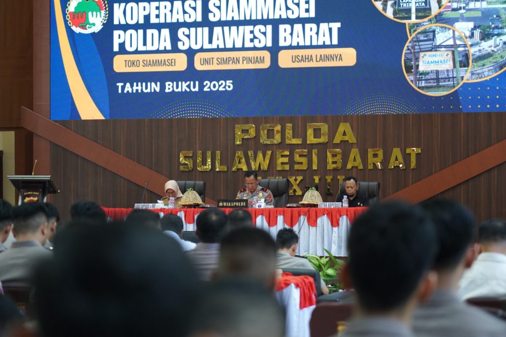 Mamuju – Wakapolda Sulawesi Barat Brigjen Pol Hari Santoso memimpin Rapat Anggota Tahunan (RAT) Koperasi Siammasei Polda Sulbar untuk tahun buku 2025, yang berlangsung di Aula Marannu Mapolda, Selasa (27/1/26).